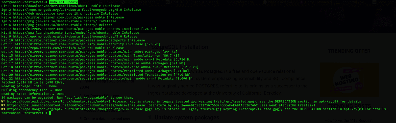 Ubuntu repository. Install PostgreSQL on Ubuntu:-